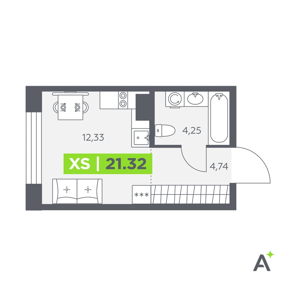 Студия 21.31 м