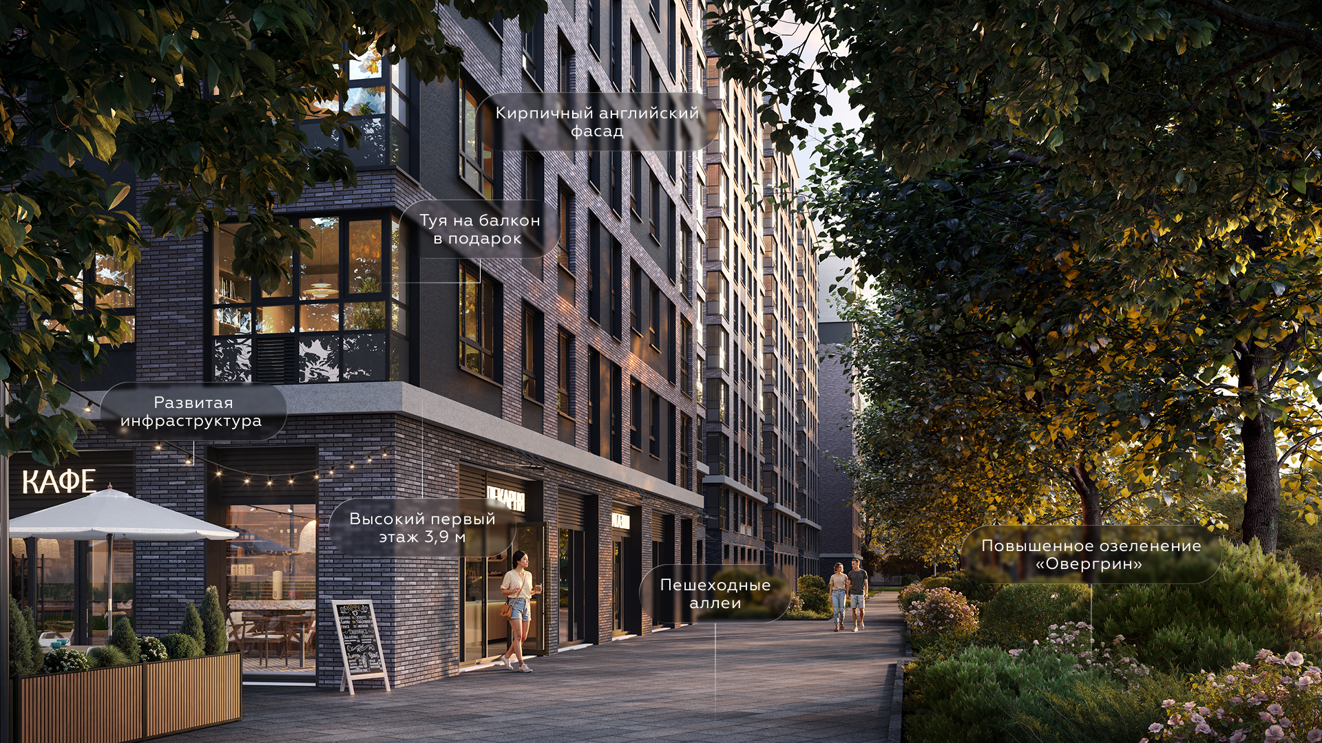 Новая концепция строительства от Группы Аквилон воплощается в кратном увеличении озеленения жилого комплекса, значительно опережающем все принятые нормы.