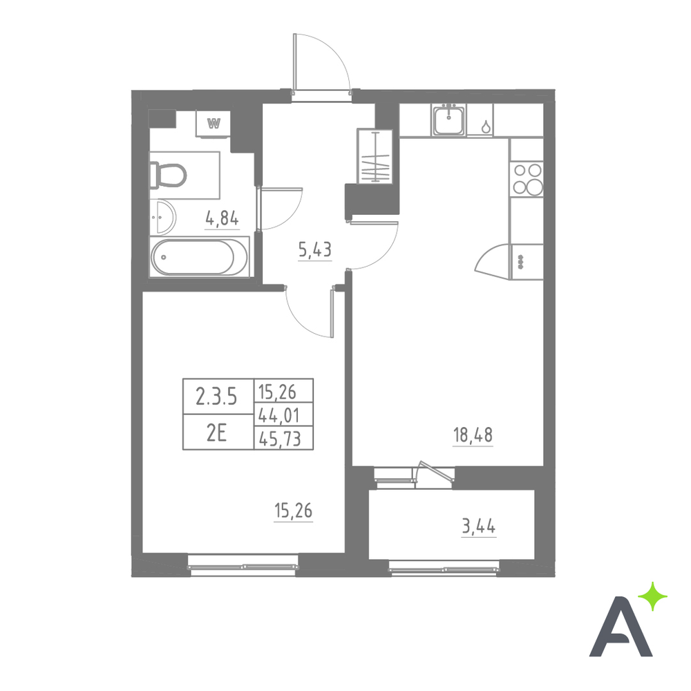 45.73 м2