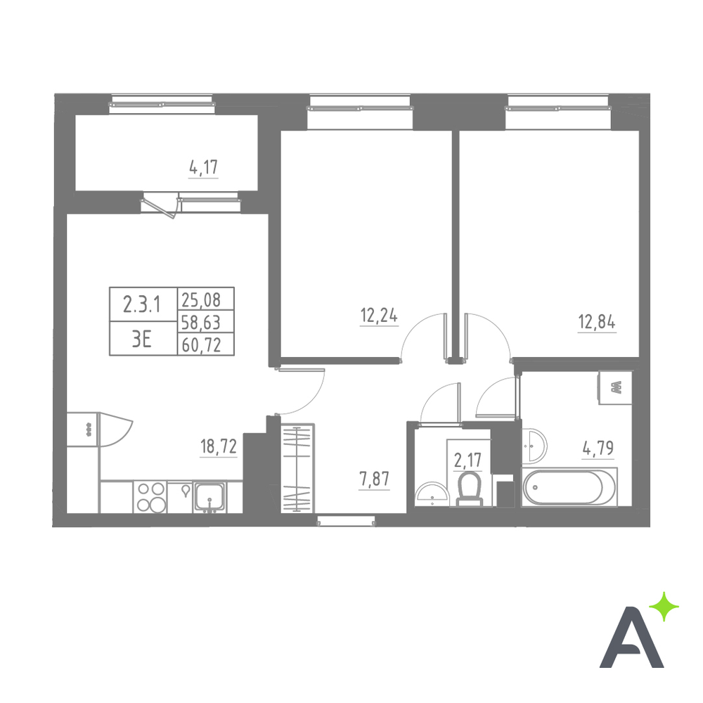 - № 115Аквилон СоларSOLAR, Секция 2, Этаж 8